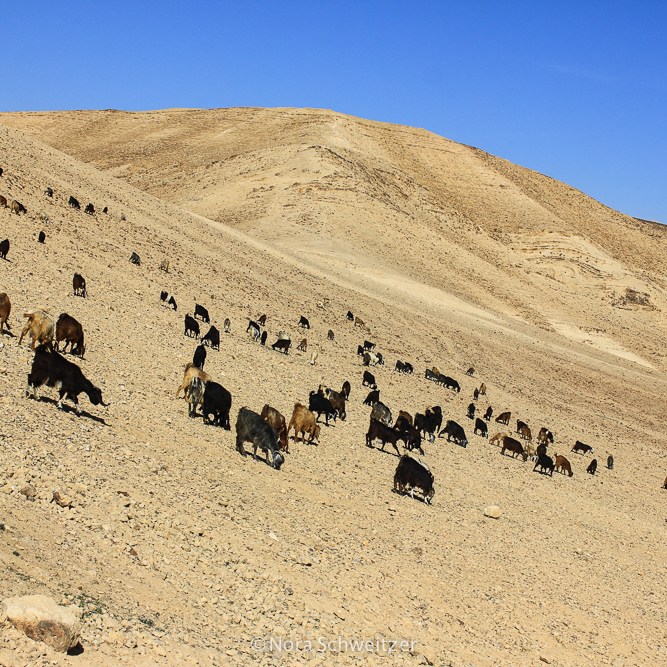 Ils vivent dans le désert qui s’étend entre les faubourgs de Jérusalem et les rives de la mer Morte. Depuis toujours, les Bédouins de Palestine nomadisent dans un décor magnifique de montagnes ocres entaillées de canyons profonds. Sur ces collines d’apparence aride qui verdissent au printemps, les Bédouins ont pendant des siècles pratiqué l’élevage de dromadaires, de chèvres et de moutons.