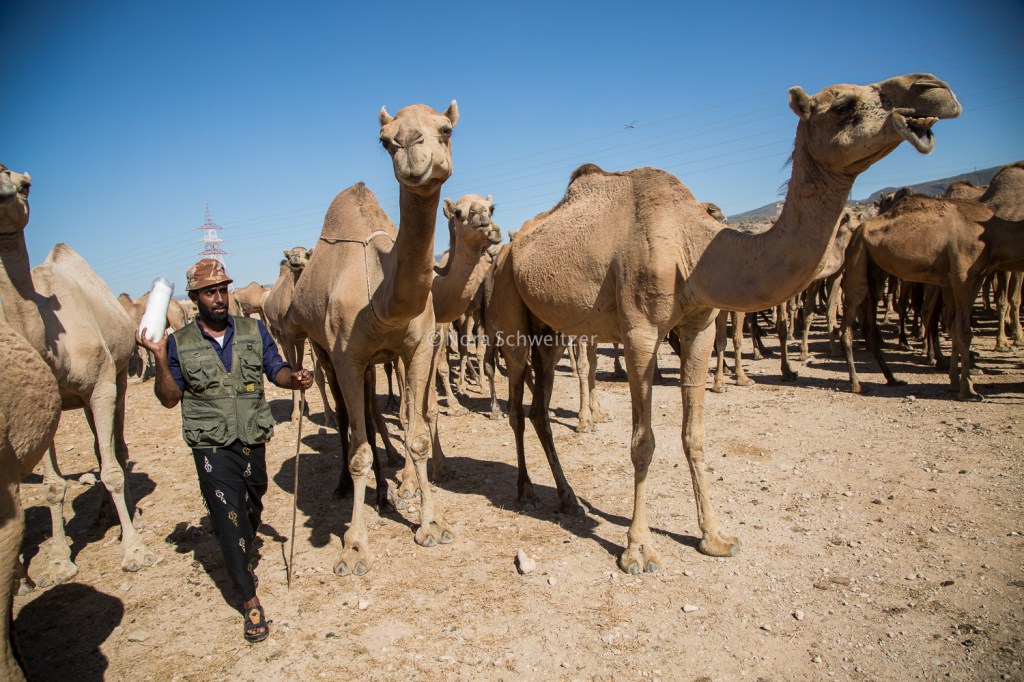 Cette fois, j’ai suivi la transhumance annuelle des tribus de Djebbalis avec leurs troupeaux de dromadaires dans les montagnes du Dhofar. C’est l’un des reportages les plus exigeants réalisés dans ma vie, à la fois physiquement et mentalement. J’ai marché plusieurs jours avec eux sous le soleil brûlant, dormi sous la tente dans des vallées isolées, sans aucun réseau ni électricité.